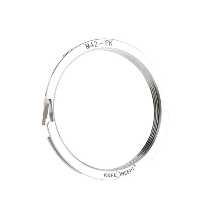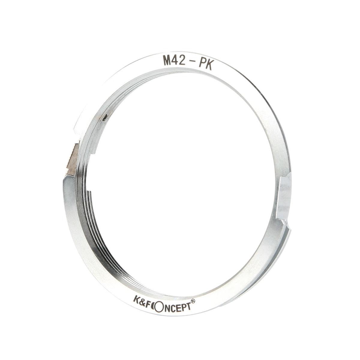 Adaptér K&F M42 Screw Lenses to Pentax K Camera Mount Adapter umožňuje pripojiť objektívy M42 k digitálnym zrkadlovkám Pentax s bajonetom K. Ponúka odolnú konštrukciu a podporu nekonečného zaostrenia.