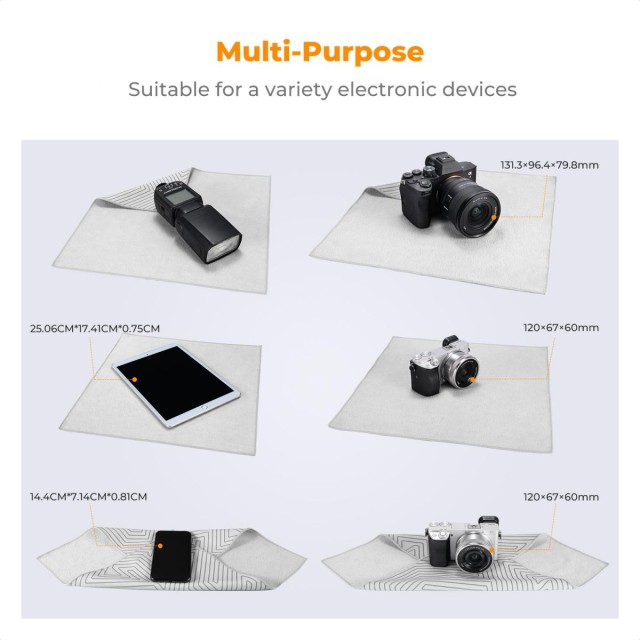 - * 【Trvanlivá a spoľahlivá】Táto magická handrička, vylepšená tak, aby spĺňala špecifické potreby fotografického vybavenia a elektroniky, účinne odoláva každodenným škrabancom a odreninám, čím chráni povrch zariadenia pred poškodením. Okrem toho ponúka odolnosť voči prachu a vlhkosti, takže je ideálna na použitie v rôznych prostrediach a zabezpečuje dlhodobú ochranu vašich zariadení.