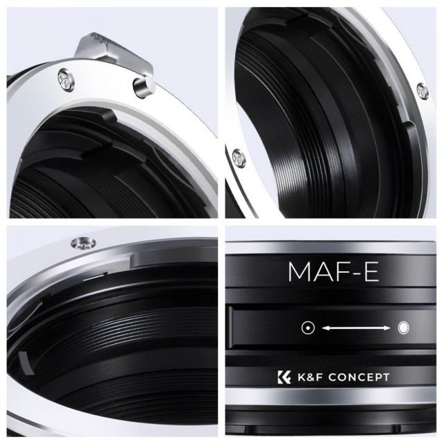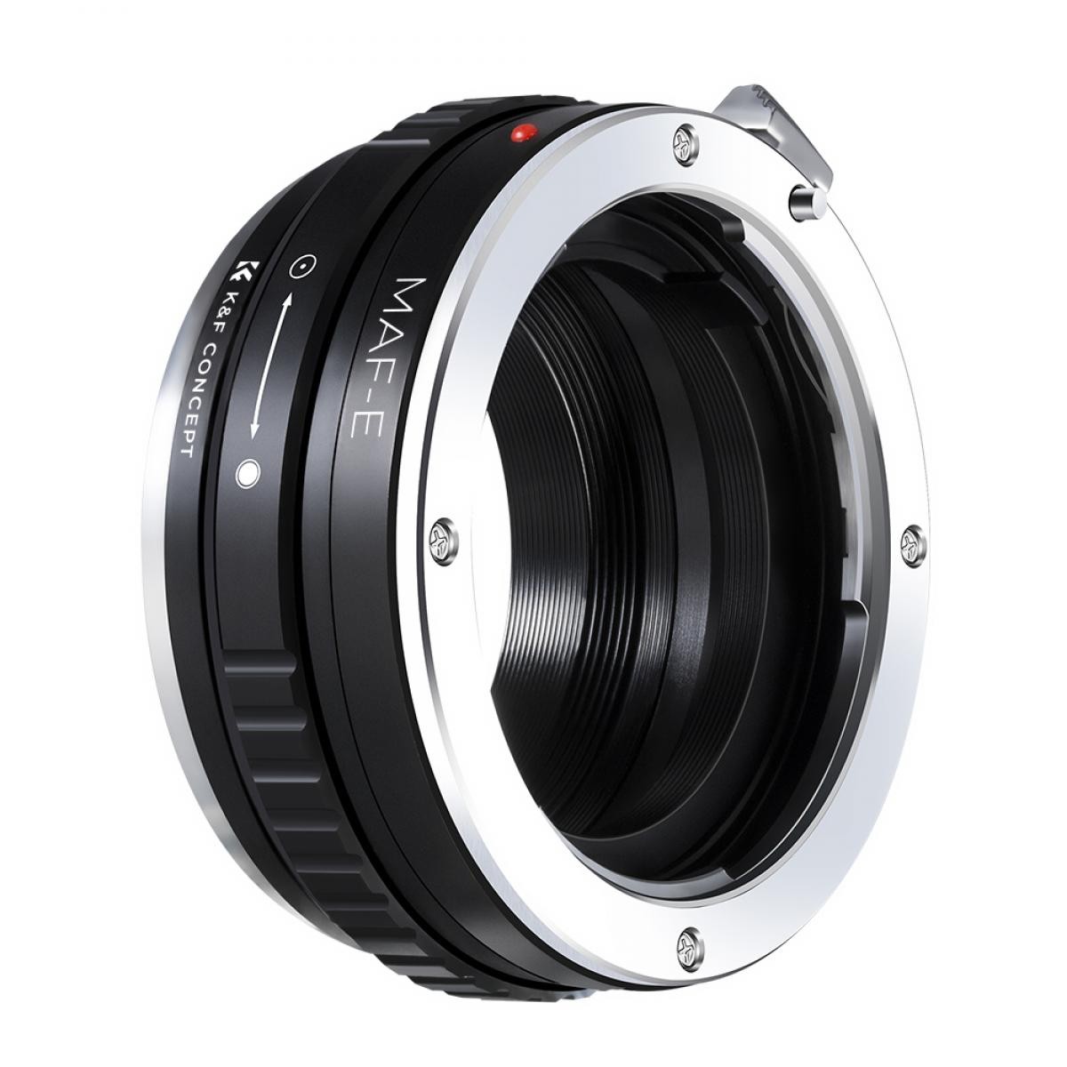 Adaptér K&F Minolta A / Sony A na Sony E-Mount umožňuje použitie objektívov Minolta AF a Sony Alpha A na bezzrkadlových fotoaparátoch Sony E-mount. Je vyrobený z eloxovaného hliníka, má manuálne ovládanie a podporuje nekonečné zaostrenie.