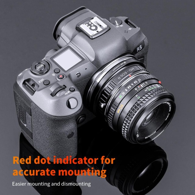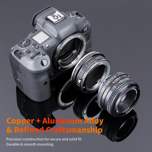Adaptér objektívu K&F Minolta MD/MC na Canon EOS R umožňuje montáž manuálnych objektívov Minolta MD a MC na fotoaparáty radu Canon EOS R. Vyznačuje sa odolnou konštrukciou z mosadze a hliníka, plynulým manuálnym ovládaním a plnou podporou nekonečného zaostrenia.