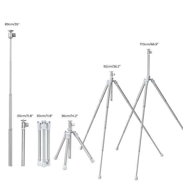 - * 【Super prenosný na cesty】4 sekcie trubice dokážu nastaviť pracovnú výšku statívu z 36 cm/14,1'' na 170 cm/66,9'' v priebehu niekoľkých sekúnd; zložený má dĺžku len 30 cm/11,8'' a váži len 0,88 kg/1,94 kg, je ideálny na fotografovanie v interiéri/ exteriéri.