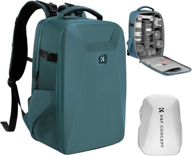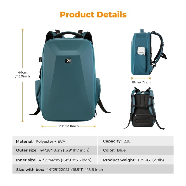 Batoh na fotoaparát K&F Concept, pevná taška na fotoaparát DSLR s 15-15,6-palcovou priehradkou na notebook Vodotesné puzdro na fotoaparát kompatibilné pre Canon/Nikon/Sony/DJI Mavic Drone (modré). súčasťou sú 2 priehradky. Predný oddiel je odnímateľný modulový zásuvný modul prispôsobený pre rôzne fotoaparáty, blesky, objektívy a drony, s 2 + 6 oddielmi. Do zadného oddelenia sa zmestia 16-palcové notebooky.
