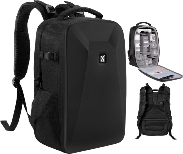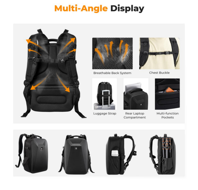Tento multifunkčný batoh na fotoaparát s tvrdým plášťom poskytuje robustnú ochranu a všestranné možnosti ukladania, takže je ideálny pre fotografov na cestách.
