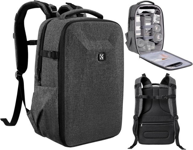 Tento multifunkčný batoh na fotoaparát s tvrdou škrupinou je určený pre fotoaparáty DSLR/SLR/bezzrkadlovky rôznych značiek. Odnímateľné modulárne vložky ako individuálne priehradky pre rôzne fotoaparáty, blesky a objektívy. V zadnom vrecku je priehradka na notebook, do ktorej sa zmestí až 15,6-palcový notebook. Predná, úplne otvorená klopa s tvrdou škrupinou, ktorá chráni fotoaparát pred nárazmi a poškriabaním. Taška na fotoaparát s 2 vnútornými vreckami na príslušenstvo na uloženie káblov, kariet SD a powerbanky. 1 skryté vrecko na zips na zadnej strane na telefón, peňaženku a iné drobnosti. Držiak na statív je vybavený bezpečným popruhom na jednej strane tašky. na druhej strane je 1 vrecko poskytujúce priestor na dáždnik alebo fľašu s vodou.