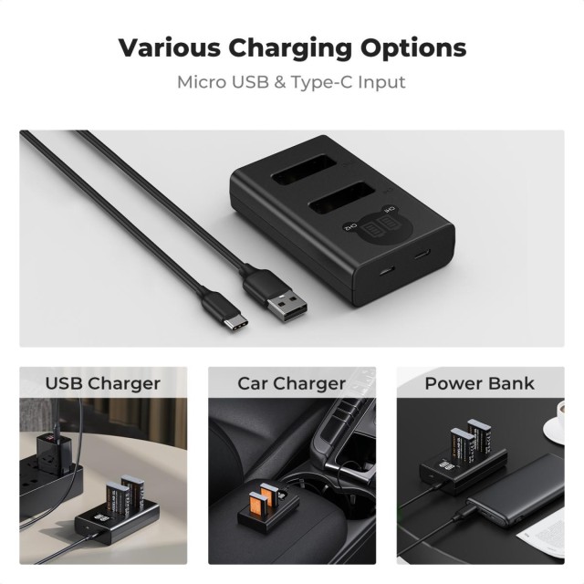 K&F Concept 2 Pack NB-13L Battery and Dual Slot Charger Set for Canon EOS G7 X Mark II, G7 X, G1 X Mark III, G5 X, G5X Mark II, G9 X, G9 X Mark II, SX620 HS, SX720 HS. Inteligentný displej LCD nabíjačky prehľadne zobrazuje kapacitu batérie, čo vám umožní rýchlo pochopiť stav nabíjania. Vstup: 5 V 2,1 A, výstup: 8.4V 700mAh (1 batéria), 8,4V 500mAh (2 …
