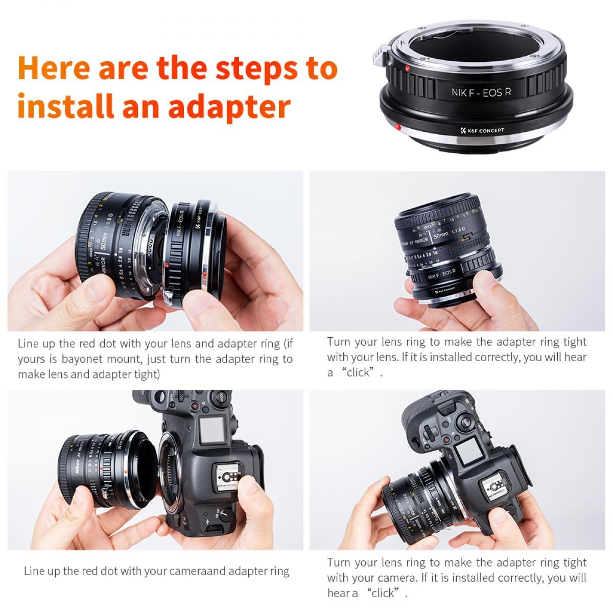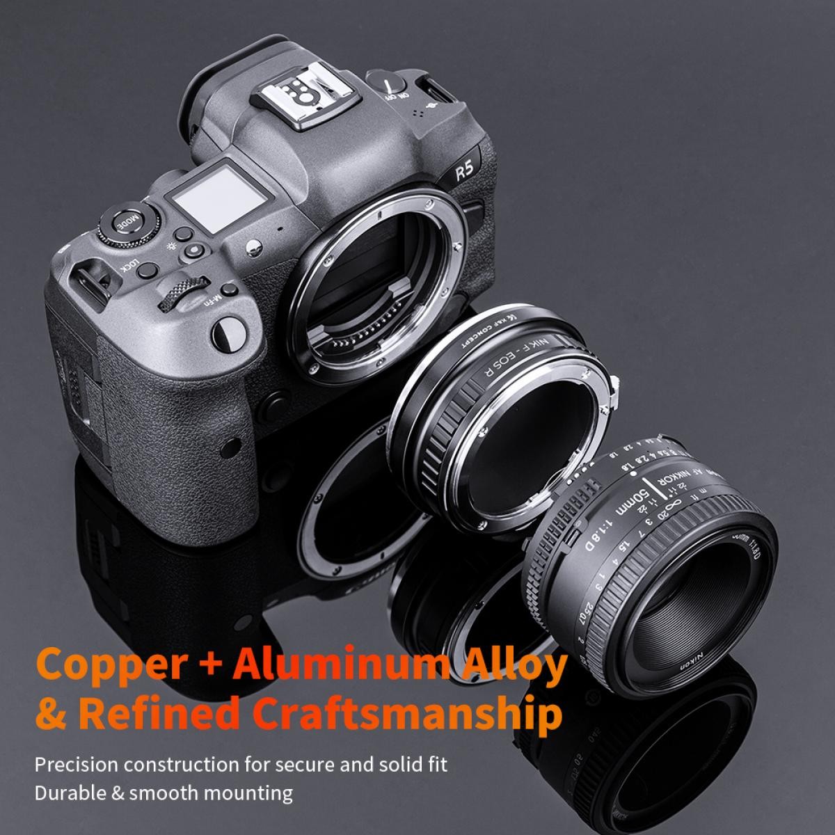 Adaptér objektívu K&F Nikon AI na Canon EOS R umožňuje bezproblémové použitie objektívov s bajonetom Nikon F/AI na fotoaparátoch radu Canon EOS R. Vyznačuje sa odolnou konštrukciou z mosadze a hliníka, manuálnym ovládaním a plnou podporou nekonečného zaostrenia.