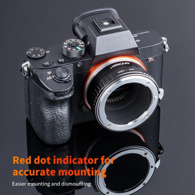 Adaptér objektívu K&F Concept Nikon AI na Sony E-Mount Copper vám umožňuje pripojiť objektívy Nikon F/AI k bezzrkadlovým fotoaparátom Sony E-mount. Ponúka odolnú celokovovú konštrukciu, manuálne ovládanie a podporu nekonečného zaostrenia.