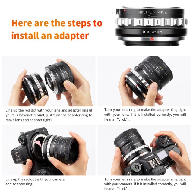 Adaptér objektívu K&F Concept Nikon G/F/AI/AIS/D na Nikon Z je precízne vyrobené riešenie na prispôsobenie celej rady objektívov Nikon s bajonetom F moderným bezzrkadlovým fotoaparátom Nikon s bajonetom Z, vrátane modelov Nikon Z6 a Z7. Adaptér je vyrobený z vysoko kvalitnej medi a ponúka mimoriadne hladké nasadenie objektívu a zároveň zabezpečuje bezpečné a stabilné pripojenie. Poskytuje plne manuálne ovládanie, ktoré umožňuje manuálne zaostrovanie a nastavenie clony – podporované integrovaným mechanickým kolíkom na ovládanie clony na objektívoch typu Nikon G. Nekonečné zaostrenie je plne zachované, čo robí adaptér ideálnym pre fotografovanie aj natáčanie videa. Červená vyrovnávacia bodka zaisťuje jednoduchú a presnú inštaláciu a rýchle odstránenie. Ak fotoaparát zobrazuje varovanie „objektív nie je správne nainštalovaný“, používatelia môžu upraviť nastavenie, ktoré umožňuje spúšť bez detekovaného objektívu, ako je uvedené v príručke Nikon Z. Tento adaptér otvára prístup k širokému výberu objektívov Nikon F na dnešných pokrokových telách s bajonetom Z.