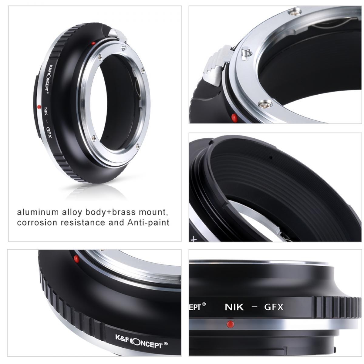 Adaptér K&F Nikon na Fuji GFX umožňuje použitie objektívov Nikon AI, AI-S a F-mount na strednoformátových fotoaparátoch Fuji GFX. Vyznačuje sa odolnou kovovou konštrukciou a plne manuálnym ovládaním.