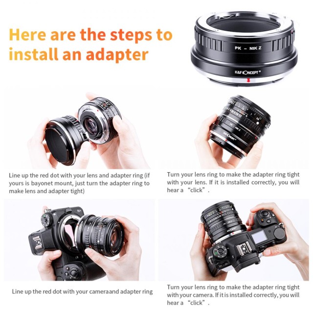 Adaptér K&F Pentax K na Nikon Z umožňuje používať objektívy s bajonetom Pentax K na bezzrkadlových fotoaparátoch Nikon s bajonetom Z. Vyznačuje sa hladkou medenou konštrukciou, plne manuálnym ovládaním a nekonečným zaostrením.