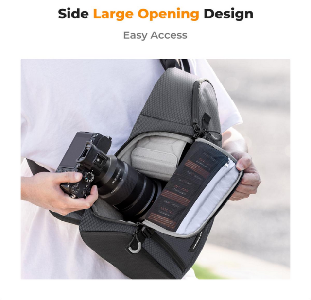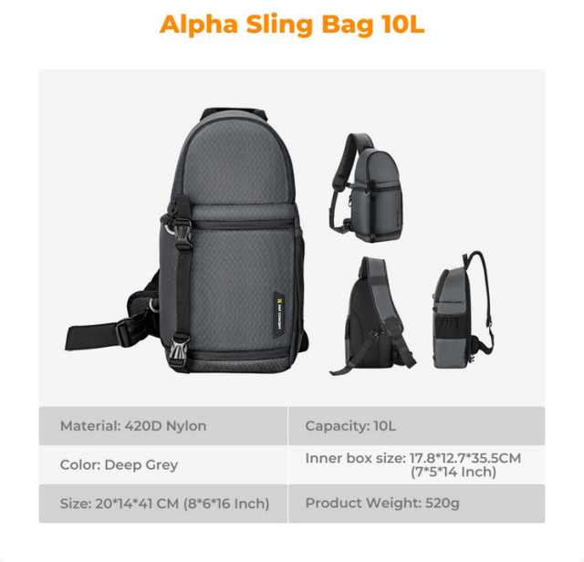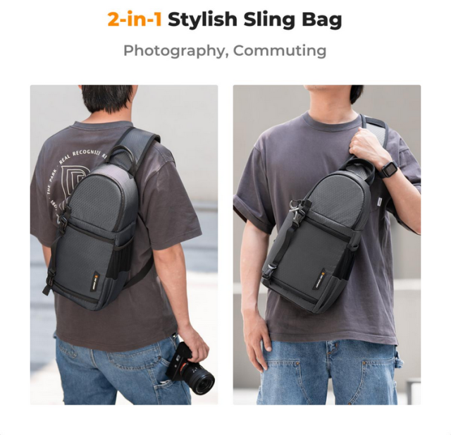 Taška K&F Urban Wander 02 Sling Bag s objemom 10 l je premyslene navrhnutá taška na fotoaparát, ktorá spája štýl, praktickosť a ochranu. S rozmermi 16 x 8 x 6 palcov poskytuje dostatok úložného priestoru pri zachovaní elegantného a kompaktného tvaru. Taška je vybavená viacerými priehradkami, ktoré vám umožnia bezpečne uložiť fotoaparát, objektívy, statív, príslušenstvo a osobné veci.