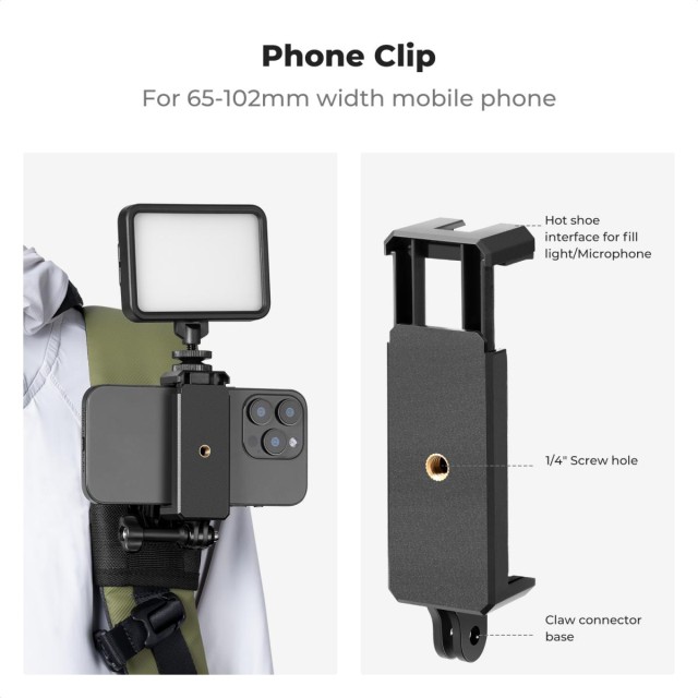 K&F Concept Backpack Belt Shoulder Strap Mount kompatibilný s GoPro Hero 13/12/11/10/9/8/7/6/5/4 Black, Session, vhodný pre DJI Osmo Action 5 Pro/4/3 a ďalšie akčné kamery, 360° rotácia. Na držiaku je 360° rotačná základňa, poskytuje rôzne uhly snímania, umožňuje otočiť kameru a vytvoriť dokonalý záber. Nainštalujte akčnú kameru, potom ju vložte do základne držiaka, prilepte ju na ramenný popruh a otáčaním nastavte uhol na zachytenie jedinečných perspektív, konštrukcia s rýchloupínacou prackou, jednoduchá výmena zariadenia.