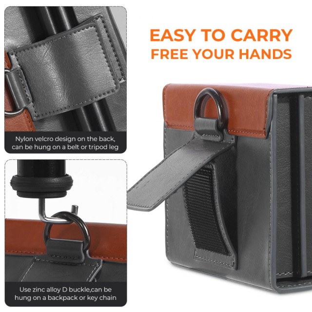 Na jednoduché prenášanie ponúka puzdro 2 možnosti nosenia: môžete ho nosiť na opasku pomocou nylonového popruhu na suchý zips alebo ho pripevniť k batohu pomocou D-spony zo zinkovej zliatiny.