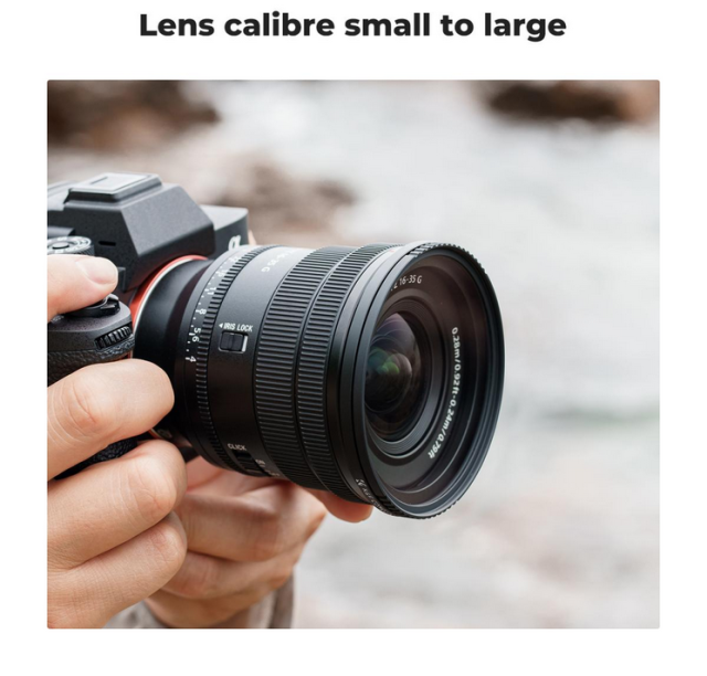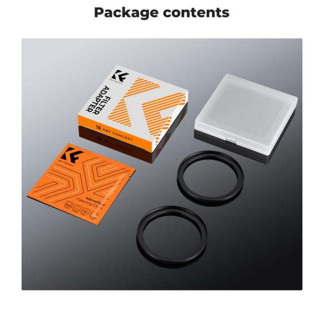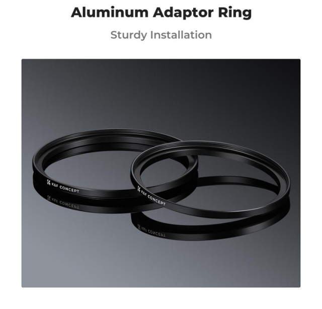 K&F 72-77 mm Step-Up Filter Ring (2 ks) umožňuje používať väčšie filtre na menších objektívoch, je vyrobený z odolnej hliníkovej zliatiny leteckej kvality s pieskovanou povrchovou úpravou. Súčasťou je vákuovo balená čistiaca handrička z mikrovlákna na starostlivosť o objektív.