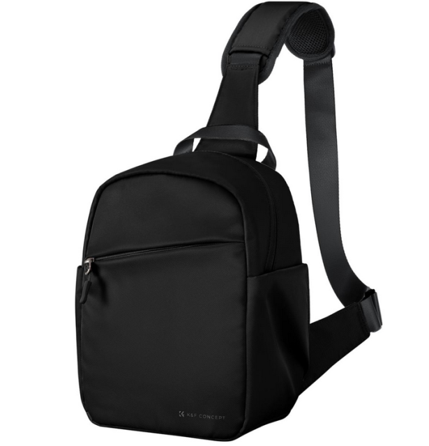 Cestovná taška cez rameno K&F v čiernej farbe je ľahká, odolná a vodeodolná taška určená pre fotografov a cestovateľov, ktorá poskytuje kompaktný úložný priestor a štýlovú všestrannosť pre každodenné potreby a fotografické vybavenie.