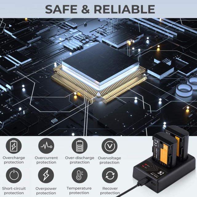- * 【Bezpečnostná inteligentná ochrana】 Duálna nabíjačka LCD presne zobrazuje stav nabíjania batérie, proces nabíjania pomocou inteligentných čipov lepšie chráni batériu pred prebitím, vysokou teplotou, nadprúdovou ochranou, prepäťovou ochranou, ochranou proti skratu
