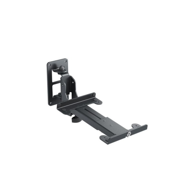 Oceľový nástenný držiak reproduktora M s nastaviteľným ramenom. Nosnosť do 15 kg. Rameno je možné otáčať do oboch strán až do uhla 54° a plynulo nakláňať až do uhla -17°. Šírka je 170 mm a hĺbka v rozmedzí 150 - 220 mm. Samolepiace gumové podložky chránia povrch reproduktora a zabraňujú vibračnému hluku. Rýchle nastavenie. Robustná kovová konštrukcia s odolnou práškovou povrchovou úpravou. Vyrába sa v čiernej farbe.