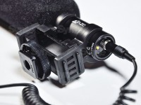 Smerový mikrofón na kamere so zabudovanou ochranou proti vetru a tlmením nárazov