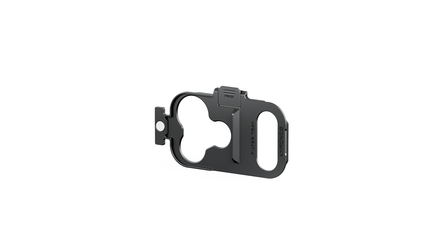 Držiak sa zasúva priamo do špeciálneho otvoru na puzdre Khronos a bezpečne sa zaistí. Vstavaná bezpečnostná spona zabraňuje náhodnému vysunutiu držiaka počas používania, a to aj v dynamických podmienkach fotografovania, ako je fotografovanie z ruky, z automobilu alebo z gimbalu.