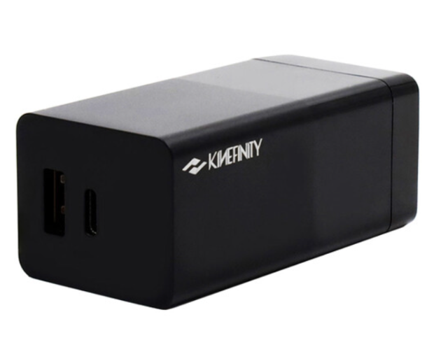 Súprava Kinefinity A941-001-01 obsahuje 100 W opletený 2-pinový kábel USB-C + 65 W PD napájací adaptér (zástrčka EÚ). Napája MAVO/TERRA priamo z elektrickej siete alebo nabíja GripBAT prostredníctvom PD Hybrid Dual Charger – 80 % za 90 minút. Tichý, skladací kábel s nominálnym prúdom 5 A je súčasťou balenia.