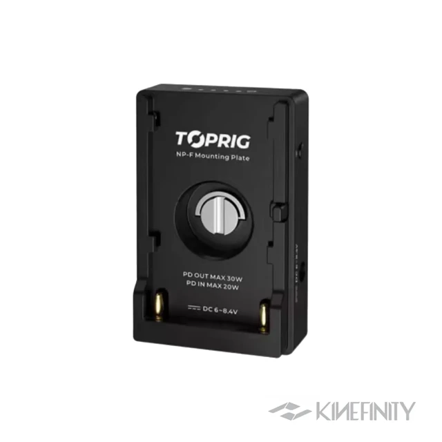Batériová doska Accsoon Toprig podporuje rýchle nabíjanie PD 30 W, čím zabezpečuje rýchle dobíjanie. Je široko kompatibilná a môže napájať rôzne zariadenia. Vďaka 1/4" skrutke na spodnej strane sa doska dá ľahko pripevniť k fotoaparátu. Pri použití s Kinefinity GripBAT 2Si alebo inými batériami NP-F poskytuje nepretržité napájanie pre EAGLE HDMI e-Viewfinder.