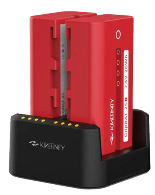 Súprava Kinefinity A941-202-02 GripBAT 2Si s 2 batériami a hybridnou dvojitou nabíjačkou PD je kompaktný, vysoko výkonný napájací balík série L, ktorý obsahuje dve jasne červené/biele batérie GripBAT 2Si s kapacitou 26 Wh (3500 mAh, 5 A nepretržite) a inteligentnú hybridnú dvojitú nabíjačku PD, ktorá umožňuje simultánne rýchle nabíjanie dvoch batérií série L, dvoch batérií BP-U30 alebo jednej z každej série prostredníctvom 60 W+ USB-C PD – ideálne pre nepretržité natáčanie s MAVO Edge, svetlami alebo monitormi.