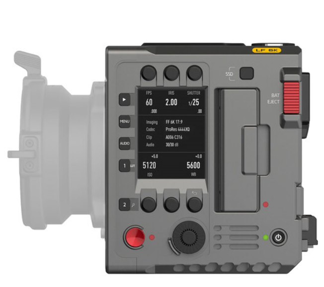 Kinefinity MAVO mark2 6K LF (A010-003-02) je ľahká digitálna filmová kamera s plným formátom, postavená na 24MP 3:2 CMOS senzore – rovnakom ako MAVO Edge 6K – ktorá poskytuje organické, filmové obrazy s dynamickým rozsahom 14+ a duálnym natívnym ISO (800/5120). Zaznamenáva 6K Open Gate až do 86 fps v ProRes 4444XQ, s integrovanou funkciou de-squeeze pre full-frame anamorfný formát (4:3 alebo 6:5). Modulárne hliníkové telo (1,37 kg) obsahuje natívny KineMOUNT (s aktívnymi možnosťami EF a E-mount podporujúcimi zaostrenie, clonu, zoom a metadáta), duálne proprietárne video výstupy, 3G-SDI a hybridnú batériovú dosku V-mount/BP-U. Nahrávajte na SSD disky KineMAG Nano cez NVMe M.2, s ProRes 422 až 4444XQ a komprimovaným cDNG. Ovládanie cez Wi-Fi pomocou aplikácie Kinefinity, KineLOG3 gamma a kompatibilita s príslušenstvom TERRA ho robia ideálnym pre dokumentárne, nezávislé filmy a high-end produkciu.