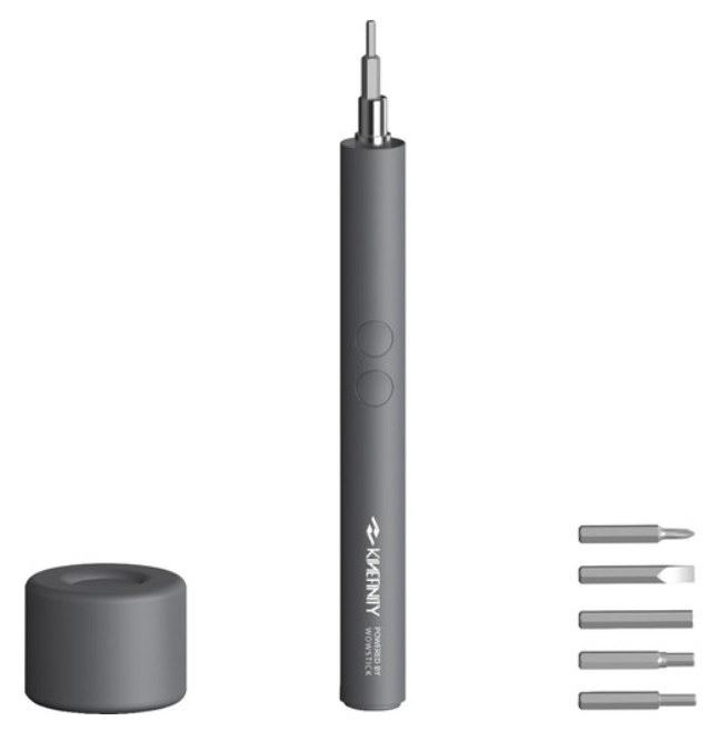 Elektrický skrutkovač Kinefinity (A710-001-02), navrhnutý v spolupráci so spoločnosťou Wowstick, je kompaktný, presný nástroj s dvojitým napájaním, šitý na mieru pre kameramanov a konštruktérov. Jeho 6,8-palcové telo z hliníkovej zliatiny S2 ukrýva elektromotor s otáčkami 200 RPM a automatickým prepínaním do manuálneho režimu – stačí vyvinúť miernu silu a plynule prejde do režimu kontrolovaného krútiaceho momentu. Tri bezodrazové LED diódy chirurgickej kvality osvetľujú stiesnené priestory bez oslnenia. 40-minútové nabíjanie cez USB-C poskytuje až 6 hodín používania (2 hodiny nepretržitého prevádzky bez zaťaženia) s 180-dňovou výdržou v pohotovostnom režime. Obsahuje šesť tvrdených oceľových bitov S2 (SL4.0, PH0, H2.0, H2.5, H3.0, H4.0) v magnetickom puzdre. Je ľahký (250 g) a prenosný, zabraňuje preťaženiu citlivých skrutiek fotoaparátu a zároveň urýchľuje montáž zariadenia MAVO/Edge, montáž monitora a výmenu príslušenstva v teréne.