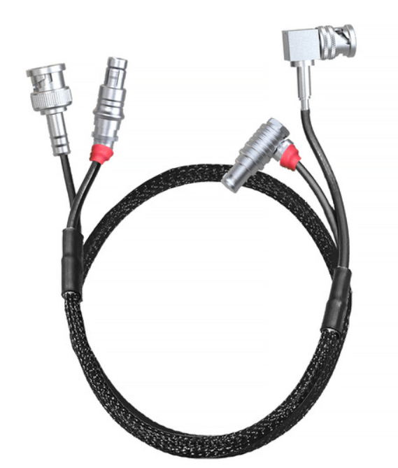 Kábel Kinefinity Power, Run/Stop & BNC 27,6" (K611-002-02) je 70 cm dlhý opletený kombinovaný kábel s priamym konektorom BNC + 5-pin LEMO (kamera) a pravouhlým konektorom BNC + 5-pin LEMO (EAGLE SDI). Poskytuje 3G-SDI video + napájanie + run/stop v jednom čistom vedení – ideálne pre ramenné držiaky a Steadicam.