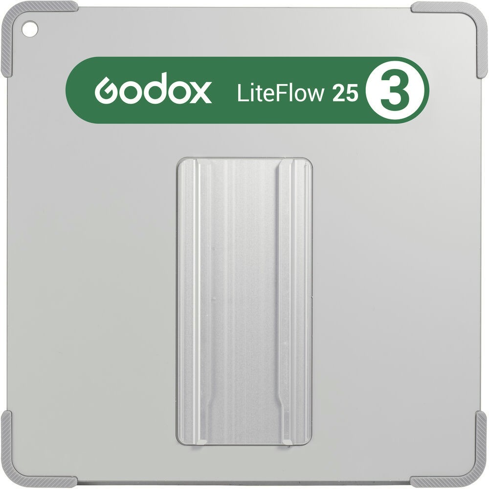 Godox Knowled LiteFlow 25-D3 (25 × 25 cm) je mäkký strieborný reflektor s hliníkovým povrchom, určený na vytváranie difúzneho doplnkového osvetlenia. Je ľahký, farebne označený a integruje sa do systému Cine Lighting Reflector od Godoxu, čím poskytuje univerzálne a presné filmové osvetlenie.