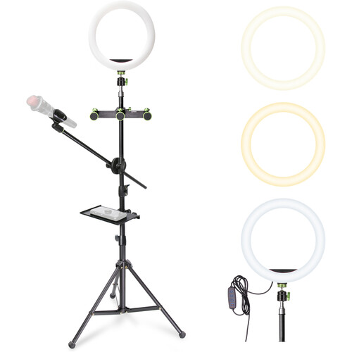 Deluxe LED Ring Light Kit with Stand and Smartphone Holder od spoločnosti LanParte vám uľahčí vytváranie profesionálne vyzerajúceho on-line obsahu, od telekonferencií a internetových výukových programov až po živé prenosy, filmy na YouTube a TikTok. 10" kruhové svetlo LED sa jednoducho používa, je stmievateľné a má tri voliteľné teploty farieb.