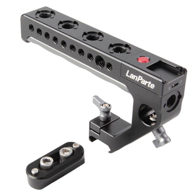 Horná rukoväť LanParte Record / Stop LANC s 3/8 "- so 16 skrutkami a ARRI kompatibilnými kolíkmi Anti-Twist poskytuje ergonomické uchopenie pre zábery z malého uhla alebo prenášanie fotoaparátu, ako aj ovládanie záznamu / zastavenia pomocou protokolov LANC. Rukoväť je vynikajúcou voľbou pre filmárov, ktorí hľadajú pohodlnú hornú rukoväť, ktorá dokáže ovládať fotoaparáty Panasonic s podporou LANC, ako aj fotoaparáty Sony a ďalšie fotoaparáty, ktoré podporujú protokoly Sony LANC. Zapustený posuvný prepínač umožňuje prepínať medzi protokolmi Panasonic a Sony, a rukoväť je dodávaná s 2,5 mm káblom LANC a 2,5 mm káblom pre viacnásobné rozhranie, čo vám umožní ovládať rôzne fotoaparáty.