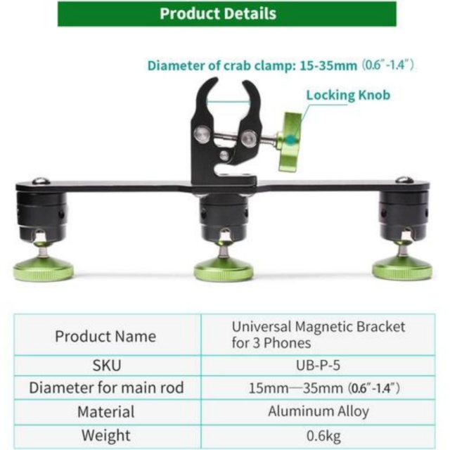 LanParte Magnetický držiak na statív pre 3 telefóny