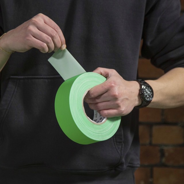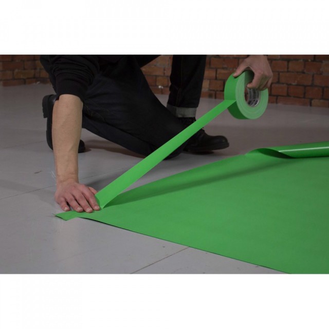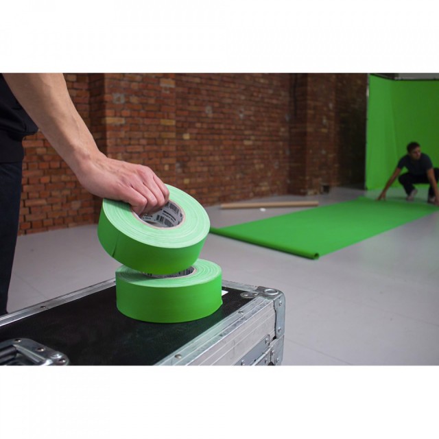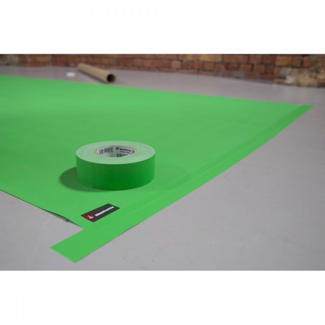 Manfrotto Gaffer Tape 50 mm x 50 m Chroma Key Greenje ideálny na upevnenie riešení pozadia k podlahe a na zakrytie spojov prebezšvíkové kľúčovanie pri použití vinylových podlahových riešení Manfrotto.