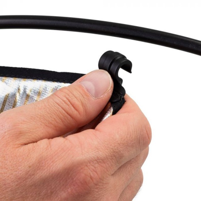 HaloCompact sa môže pochváliť špeciálnym patentovaným dizajnom odrazovej dosky, vďaka ktorému je ich prenášanie ešte jednoduchšie ako pri iných štandardných odrazových doskách! Na rozdiel od mnohých tradičných odrazových dosiek s oceľovým rámom je HaloCompact 82 cm skonštruovaný pomocou novej inovatívnej technológie RapidExoframe od spoločnosti Manfrotto. Skladací ľahký hliníkový rám sa rýchlo a jednoducho nasadí a kryt reflektora sa jednoducho pripevní na rám. Dômyselne navrhnutá konštrukcia rámu RapidExoFrame umožňuje rozložiť rám na malé časti a spolu so zloženými látkovými časťami ho uložiť do prenosného balenia s rozmermi 6,5 x 27 x 6,5 cm (2,5" x 10,5") a celkovou hmotnosťou len 335 g.