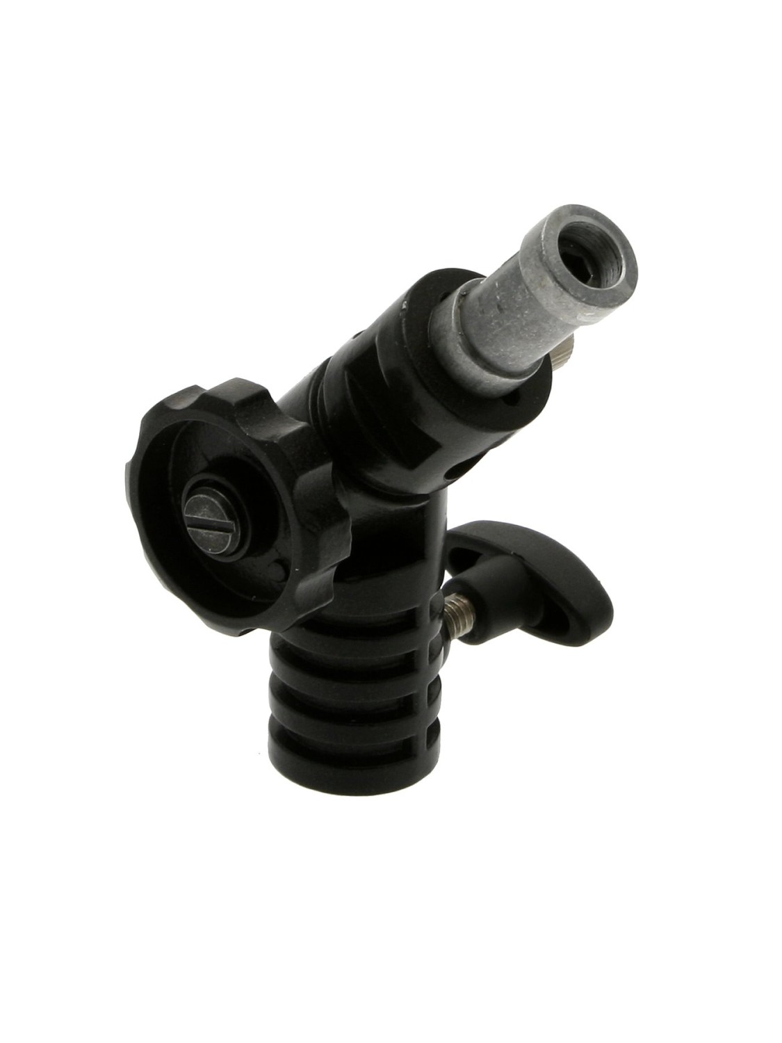 Hlavica je vybavená aretačným gombíkom, ktorý umožňuje plynulé nastavenie sklonu a zároveň zabraňuje náhlemu spadnutiu alebo nežiaducemu pohybu pri premiestňovaní svetla. To zaručuje bezpečnosť aj presnosť pri nastavovaní a prevádzke. Súčasťou balenia je upínací čap, ktorý zabezpečuje kompatibilitu s širokou škálou profesionálneho osvetľovacieho vybavenia, čím sa stáva univerzálnym doplnkom do každého štúdia alebo výbavy na lokáciu.