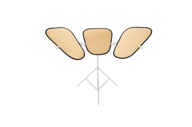 Sada 3 panelov Lastolite Triflector MKII – zlaté/biele panely je univerzálny doplnok na osvetlenie určený pre portrétnu a módnu fotografiu. Vďaka obojstranným panelom si môžete vybrať medzi teplými zlatými alebo neutrálnymi bielymi odrazmi, čo vám poskytuje flexibilitu pri tvarovaní svetla a dodáva očiam fotografovanej osoby charakteristický odlesk. Táto sada obsahuje tri panely, ale upozorňujeme, že stojan nie je súčasťou balenia.