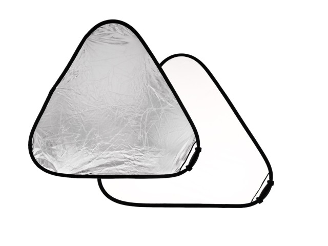 Reflektor Lastolite TriGrip Large 120 cm strieborný/biely je univerzálny ručný osvetľovací nástroj s jedinečným trojuholníkovým dizajnom a integrovanou rukoväťou. Jeho obojstranné strieborné a biele povrchy umožňujú vytvárať kontrastné aj mäkké, neutrálne svetlo pre profesionálnu fotografiu.