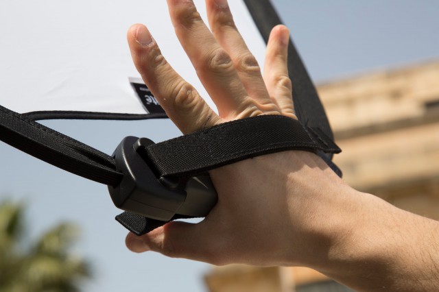 Vďaka tomu možno svetlo správne nasmerovať na požadované miesta len jednou rukou. Pomocou poistného popruhu je možné ruku pripevniť k rukoväti. Tým sa eliminuje potreba kŕčovito držať rukoväť a znižuje sa tlak na zápästie a prsty pri dlhšom držaní.