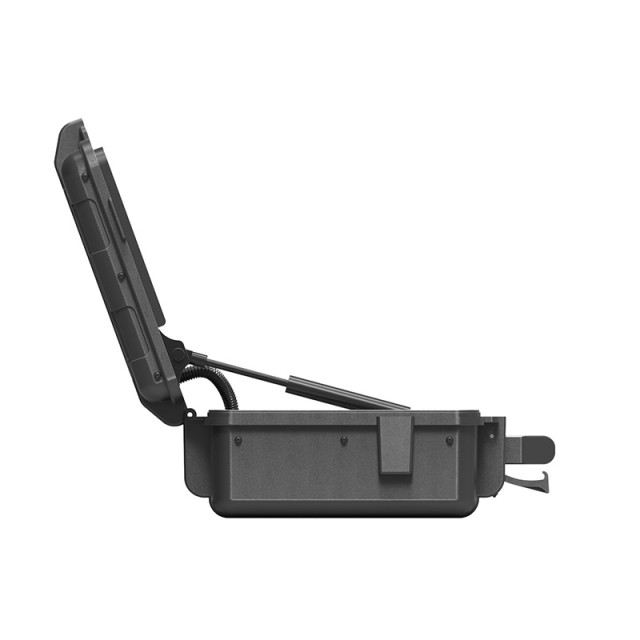 12,5" monitor Lilliput 4K Broadcast Director Monitor s SDI, HDR a 3D LUTS v pevnom puzdre je prenosný samostatný monitor s množstvom funkcií vhodný na vysielanie. Panel LCD monitora s rozlíšením 3840 x 2160 pixelov je zabudovaný do veka, batériová doska a vstupy/výstupy sú umiestnené v základni a všetky pripojenia sú chránené pred prachom, vodou a poškodením počas prepravy a skladovania. Veko kufra má dva piesty, ktoré chránia zabudovaný panel tým, že zabraňujú trhnutiu veka alebo jeho náhodnému zabuchnutiu.
