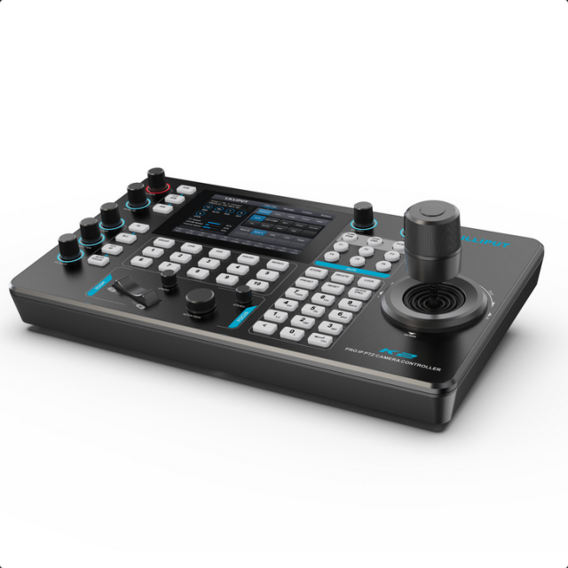 Lilliput K2 (s NDI) je univerzálna riadiaca jednotka kamery, ktorá podporuje protokoly Visca, Visca Over IP, Pelco P&D a Onvif a ponúka robustné možnosti pripojenia prostredníctvom rozhraní IP, RS-422, RS-485 a RS-232. Je kompatibilná s napájaním PoE a 12 V DC a poskytuje náhľad kamery v reálnom čase na obrazovke, automatické prideľovanie IP adries a ovládanie až 100 IP kamier v jednej sieti.
