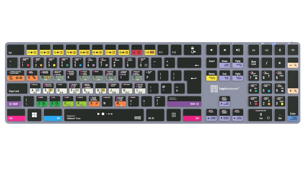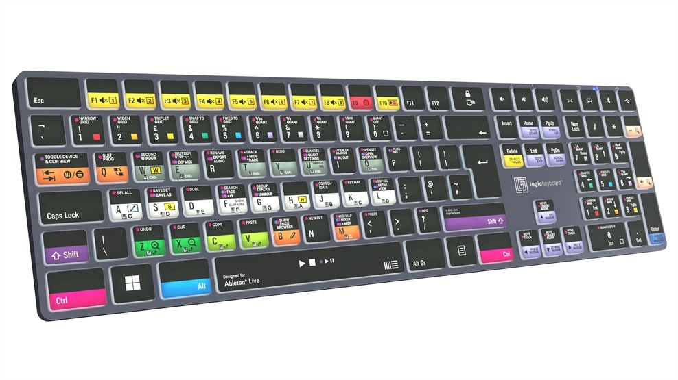 LogicKeyboard Ableton Live TITAN PC UK je prémiová bezdrôtová podsvietená klávesnica špeciálne navrhnutá pre profesionálnych hudobných producentov používajúcich Ableton Live na systémoch Windows PC. Vďaka viac ako 100 farebne označeným klávesovým skratkám prispôsobeným pracovným postupom Ableton Live umožňuje rýchly prístup k základným funkciám, ako je spúšťanie klipov, výber skladieb, ovládanie zariadení a navigácia v reláciách, čím výrazne zvyšuje produktivitu v digitálnych audio pracovných staniciach.