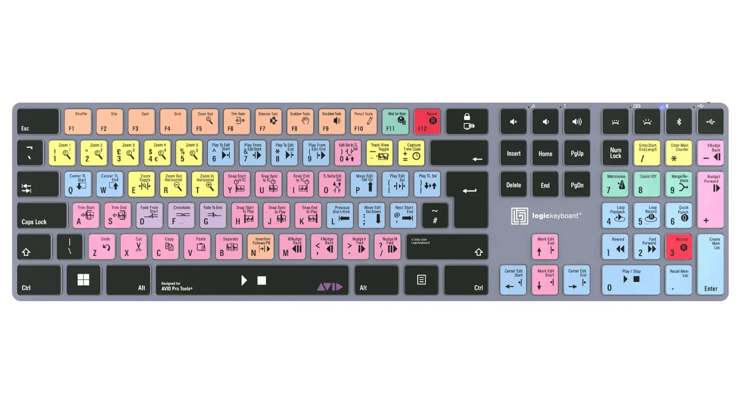 Navrhnutá pre Avid Pro Tools – vyrobená pre WindowsTáto klávesnica Logickeyboard je vašou voľbou číslo jeden pri editovaní v programe Avid Pro Tools. Skratkové príkazy označené na klávesoch a ich farebne označené definície z vás v okamihu urobia majstra ovládania programu Avid Pro Tools. Klávesnica Logickeyboard je ideálna pre hudobných producentov, zvukových editorov a všetkých ostatných, ktorí usilovne pracujú s programom Avid Pro Tools.