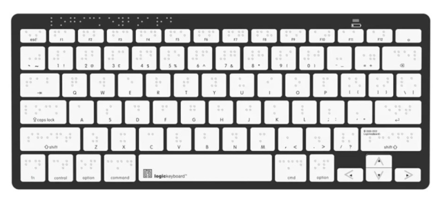 Pomocná klávesnica Logickeyboard Braille/Large Print Black on White pre Mac je kompaktná