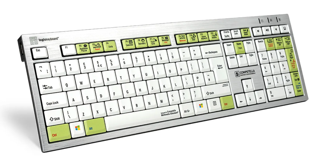 Klávesnica Logickeyboard Competella Multimedia Attendant Telecom (britská angličtina) je farebne označená klávesnica s nízkym profilom určená pre počítače s operačným systémom Windows, na ktorých beží systém Competella Multimedia Attendant. Umožňuje jednoduchý prístup k hovorom, e-mailom, sociálnym sieťam a ďalším úlohám, pričom slúži aj ako štandardná klávesnica na každodenné použitie.