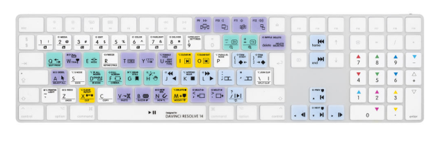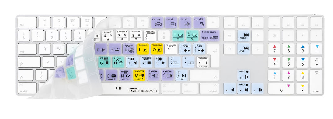 Kryt LogicKeyboard Blackmagic DaVinci Resolve 14 pre klávesnicu Apple Magic Keyboard (britská angličtina) je silikónová fólia na klávesnicu, ktorá chráni váš Mac pred prachom, nečistotami a rozliatymi tekutinami a zároveň ponúka jasne označené, farebne odlíšené klávesové skratky pre DaVinci Resolve 14, vďaka čomu je editácia rýchlejšia a efektívnejšia.