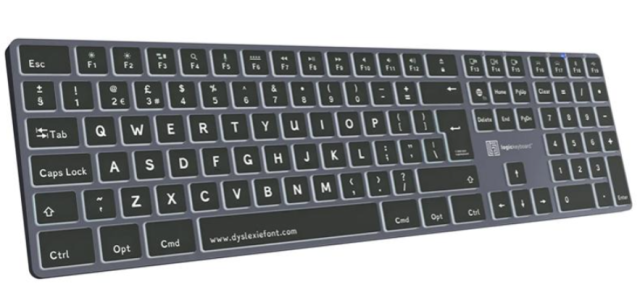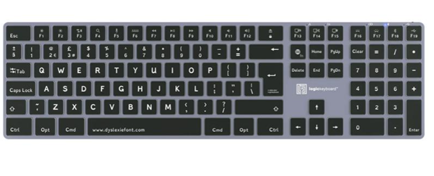 Pomocná bezdrôtová klávesnica Logickeyboard Dyslexie Bluetooth pre Mac je špeciálne