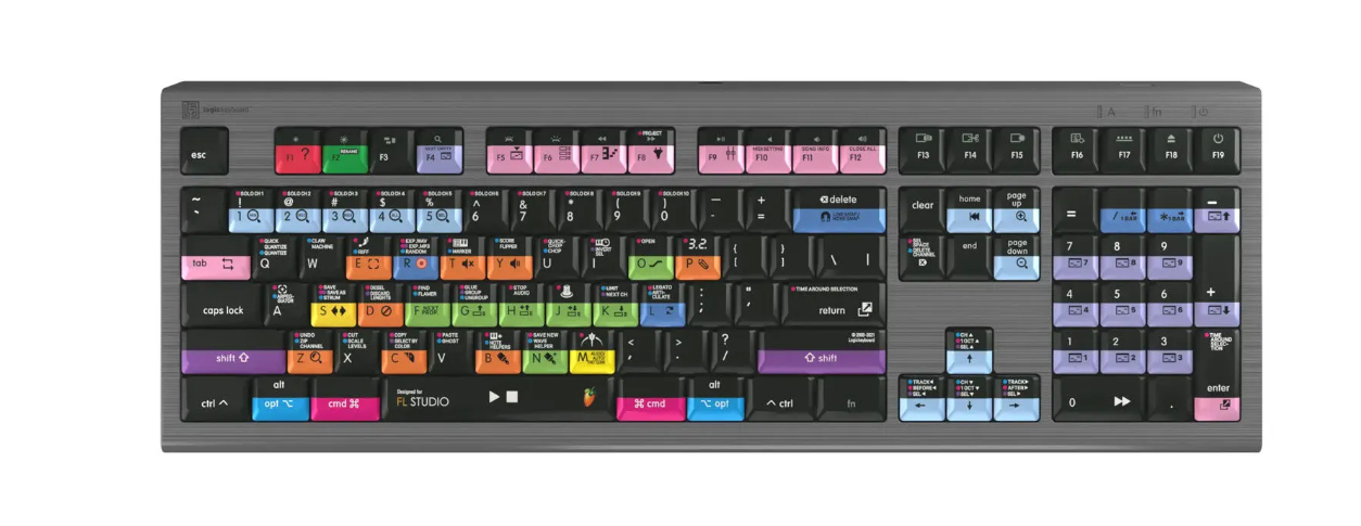 Klávesnica Logickeyboard FL Studio Mac ASTRA 2 s podsvietením (britská angličtina) je profesionálna klávesnica určená na tvorbu hudby v programe FL Studio. Vďaka farebne označeným klávesovým skratkám, nastaviteľnému podsvieteniu a integrovanému USB rozbočovaču zvyšuje efektivitu práce a poskytuje používateľom systému macOS vysokú presnosť.