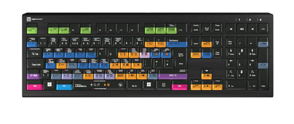 Klávesnica LogicKeyboard Unreal Engine ASTRA 2 PC UK je profesionálna podsvietená klávesnica určená pre používateľov Unreal Engine 5. Vďaka 108/109 klávesám so strihovým mechanizmom a farebne označenými skratkami, piatim stupňom nastavenia jasu a integrovanému rozbočovaču USB 3.0 spája efektivitu, odolnosť a pohodlie pri kreatívnej práci.