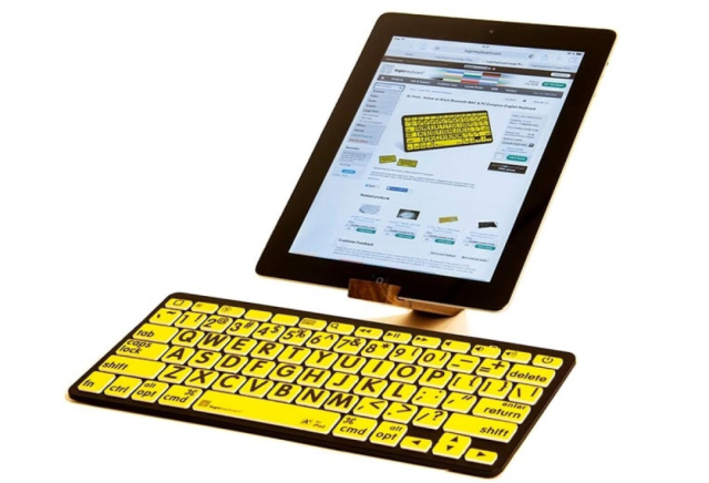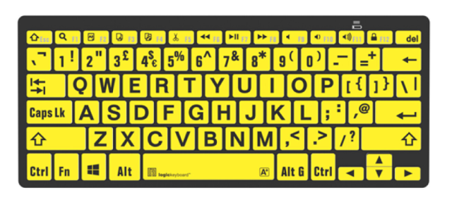 Bluetooth klávesnica XLPrint v čiernej a žltej farbe pre britské rozloženie od spoločnosti Logickeyboard je prvou mini klávesnicou s veľkými písmenami na trhu, ktorá je špeciálne navrhnutá pre používateľov so zrakovým postihnutím a starších ľudí. Vďaka kontrastným čiernym písmenám na žltom pozadí zlepšuje čitateľnosť, znižuje počet chýb pri písaní a zmierňuje namáhanie očí.
